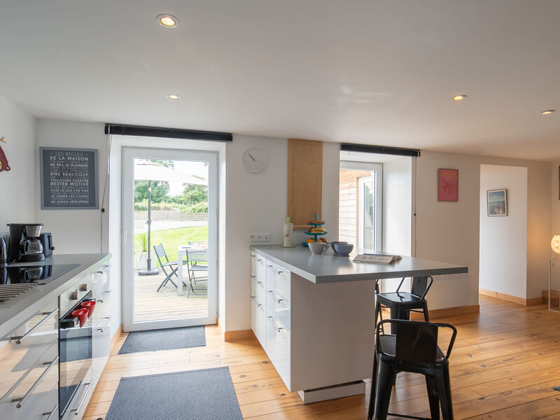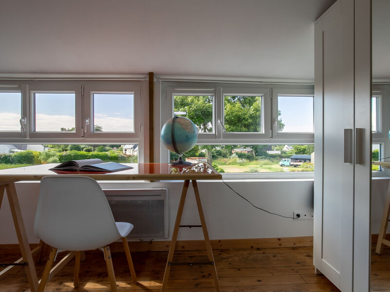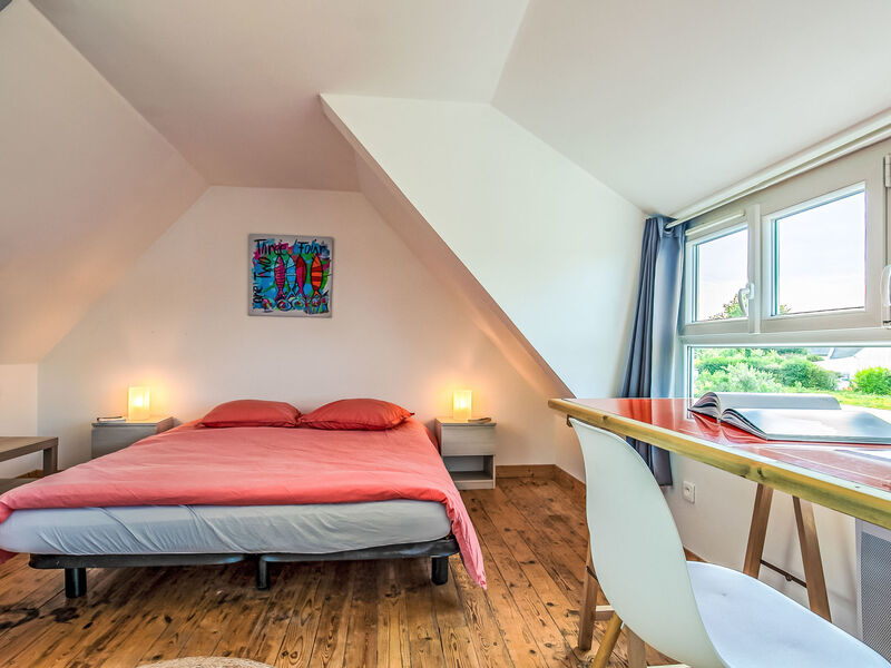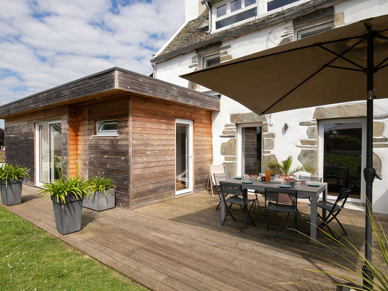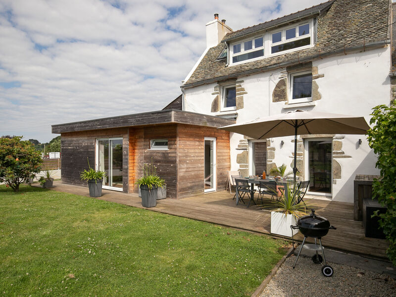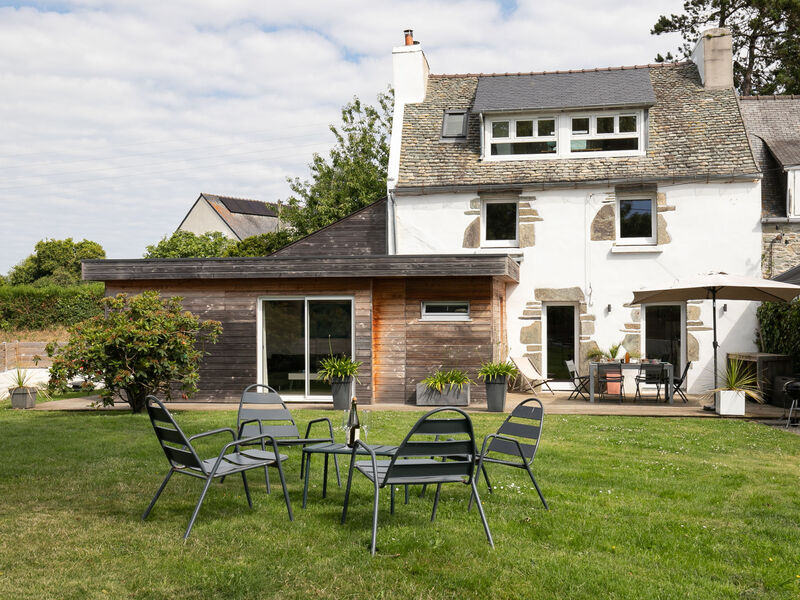 "Ty Louen", huis 5-kamers 139 m2 op 3 verdiepingen. Ruim en licht, mooi en smaakvol ingericht: groot, open woonkamer 29 m2 met Digitale TV en Flatscreen TV. Uitgang naar de tuin, naar het terras. Open keuken 25 m2 (oven, afwasmachine, 4 inductiekookplaten, broodrooster, waterkoker, magnetron, diepvriezer, elektrische koffiemachine, pads voor de koffiemachine (Nespresso) extra) met bar, eettafel. Uitgang naar het terras. Aparte WC. Bovenverdieping: 1 kamer met 1 2-pers bed (160 cm, lengte 200 cm), douche. 1 kamer met 2 bedden (90 cm, lengte 200 cm), douche. 2e Verdieping: 1 open kamer met afgeschuinde daken met 1 2-pers bed (160 cm, lengte 200 cm), douche/WC. Elektrische verwarming. Groot terras 20 m2, op het zuiden gelegen. Terrasmeubelen, barbecue (verrijdbaar), ligstoelen (2). Ter beschikking: wasmachine, droger, strijkijzer, kinderstoel, kinderbed tot 2 jaar, haardroger. Internet (WiFi, gratis). Rookvrij huis. Maximaal 1 huisdier/hond toegestaan. Rookmelders. Aanbod door een particulier volgens art. 155, IV van CGI.