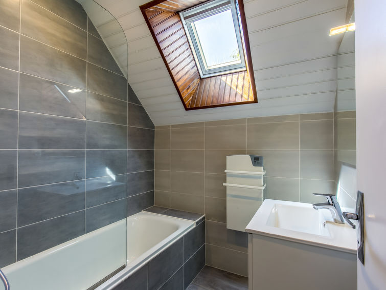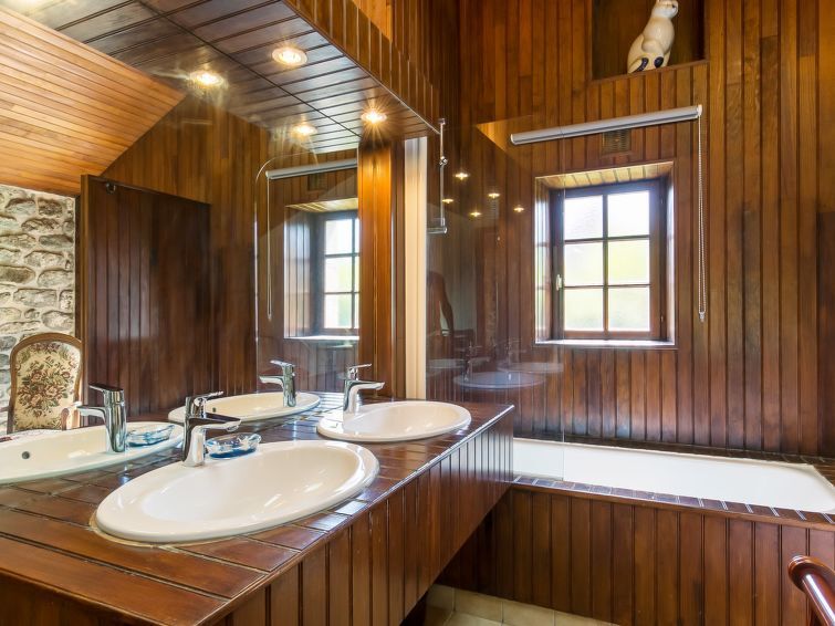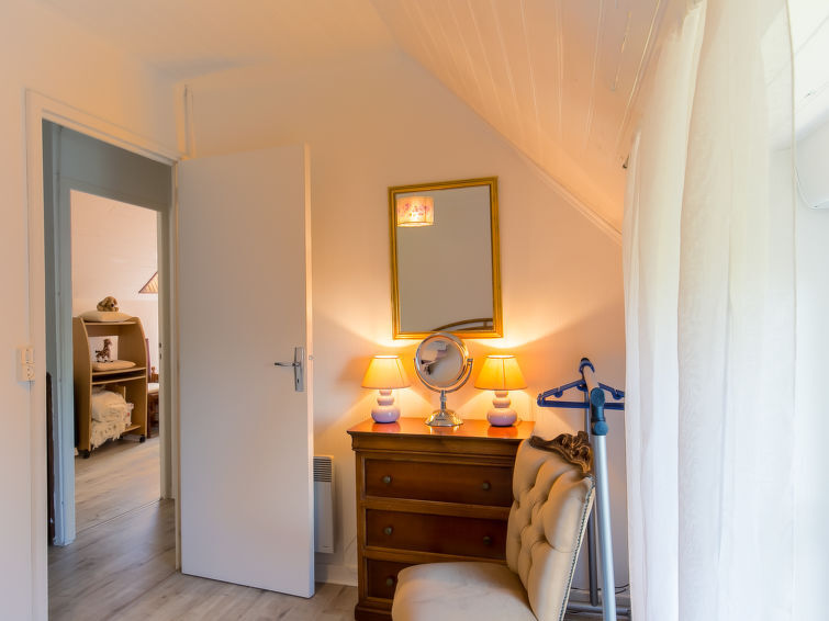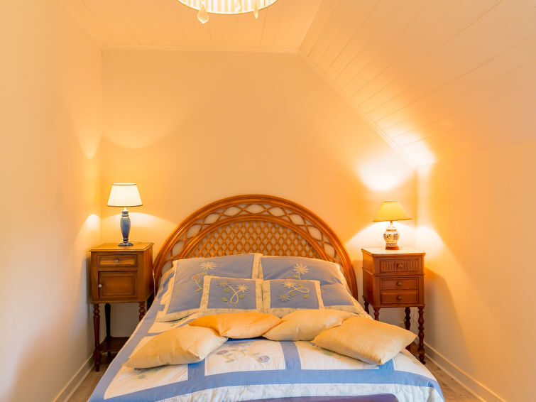 "Ty Keriquel", huis 5-kamers 150 m2. Comfortabel en gezellig ingericht: woon-/eetkamer met open haard (alleen decoratie), eettafel en TV (Flatscreen TV), stereo-installatie en DVD. 1 kamer met 1 2-pers bed (1 x 140 cm, lengte 190 cm), wastafel, aparte WC, bad/douche en dubbele wastafels. Uitgang naar de tuin. Open keuken (4-pits kookplaat, oven, afwasmachine, magnetron, diepvriezer, elektrische koffiemachine, pads voor de koffiemachine (Senseo) extra). Bovenverdieping: 1 kamer met 1 2-pers bed (140 cm, lengte 190 cm). 1 kamer met 1 2-pers bed (1 x 140 cm, lengte 190 cm). 1 kamer met afgeschuinde daken met 2 bedden (90 cm, lengte 190 cm). Badkamer, aparte WC. Elektrische verwarming. Terras. Terrasmeubelen, barbecue. Mooi uitzicht op het landschap. Ter beschikking: wasmachine, droger, strijkijzer, kinderstoel, kinderbed, haardroger. Internet (WiFi, gratis). Rookmelders.