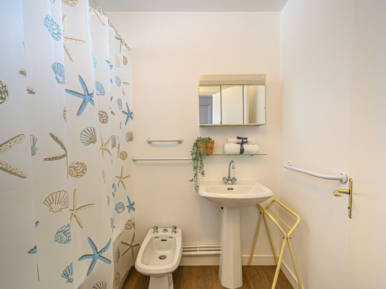 Residentie "Kérabus". In het centrum van Quiberon, perfecte locatie: in het centrum en toch rustig gelegen, 250 m van zee, 250 m van het strand. In het complex: lift, bergruimte voor fietsen. Winkel, levensmiddelenwinkel 100 m, supermarkt 500 m, restaurant, bushalte 300 m, veerboot "Embarcadère pour les îles" 850 m, zandstrand "Grande plage" 250 m, overdekt zwembad 1 km, thermaalbad "Thalassothérapie de Quiberon" 1.2 km. Jachthaven 2 km, golfterrein (9 holes) 1.2 km. Attracties in de buurt: La Côte Sauvage, Carnac et les Alignements 18 km, La Trinité sur Mer 22 km, Vannes 50 km, Lorient 60 km, Belle Ile en mer, Houat et Hoedic. Wandelgebied Le Golfe du Morbihan. De sleuteloverdracht vindt plaats bij het agentschap Interhome in Quiberon, 1 km.